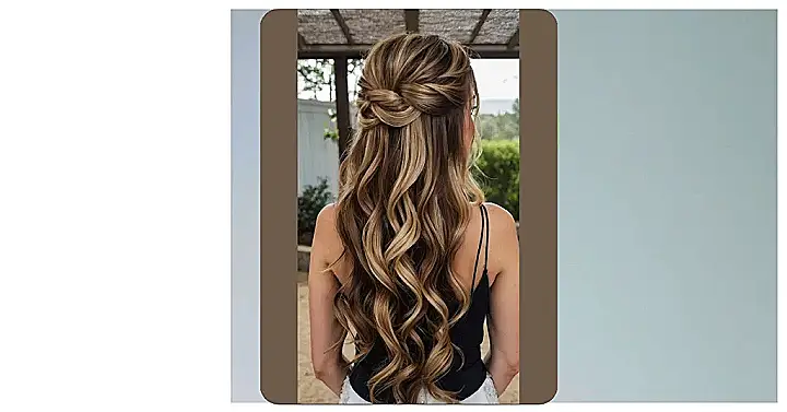 Now, imagine a vision of romantic sophistication with a half-up, half-down wedding hairstyle that exudes charm and allure. Soft waves cascading down the back paired with a delicately twisted crown create a look that is both classic and on-trend. This versatile style allows for endless variations, from floral embellishments to sparkly hairpins, making it easy to customize to match any wedding theme or personal style.