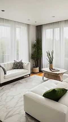 Check out that plant! It looks like it’s judging my entire life choices. But honestly, all the furniture looks super comfy, especially that little bench. It’s the perfect spot to kick your feet up after a long day. If this were my living room, I’d probably spend most of my time napping on the couch, surrounded by snacks, because, let’s face it, that’s what living room furniture is really for, right?