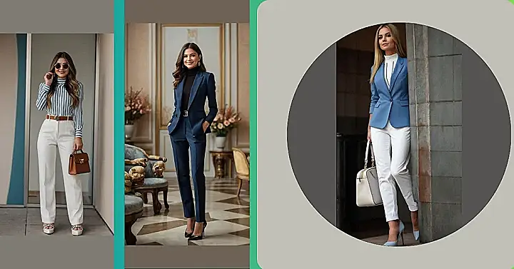 Feeling like you need a power-up for that big presentation or even just a regular Tuesday? Check out this look! That cool blue blazer is like the superhero cape of outfits, and it instantly takes your style game from “meh” to “OMG, who IS that?” Plus, those white pants are the perfect canvas for any adventure, just try not to spill your lunch on them, white is unforgiving.