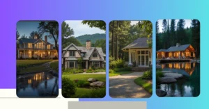 Those dark doors and windows are super mysterious, almost like they’re hiding cool stuff inside! Maybe a super awesome game room or a library filled with the most interesting books ever! I bet the inside is just as impressive as the outside, filled with cozy vibes and plenty of room for all your stuff. Seriously, who wouldn’t want to live in a little slice of architectural heaven like this?