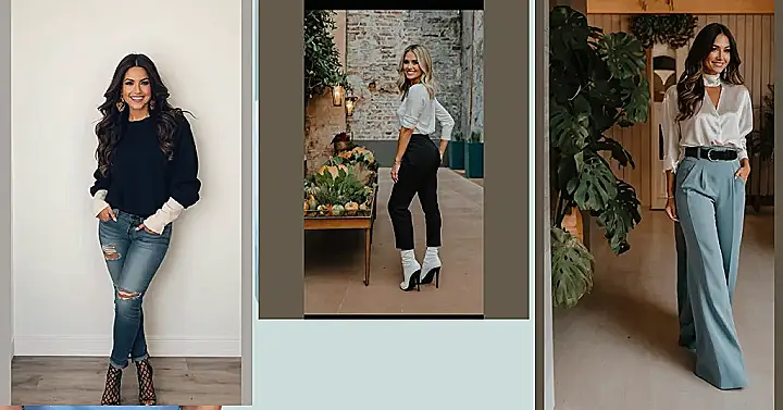This outfit is the perfect blend of classy and comfy – ideal for a Thanksgiving feast where you want to look amazing but also feel relaxed enough to enjoy all the delicious food (and maybe a second helping of pie!). Imagine strolling into your family gathering, looking effortlessly chic in a silky white blouse and those gorgeous wide-legged pants. You’ll be the most stylish guest there, ready for compliments and photos – without sacrificing comfort.