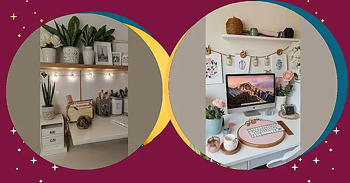 Seriously though, check out how everything has its place. From the perfectly placed plants to the organized makeup brushes, it’s proof that a tidy space is totally achievable, even if your style is more “boho chic meets Parisian cafe.” Plus, who needs a boring desk when you can have one that looks this good? It’s inspiring to keep it clean just to look at it!