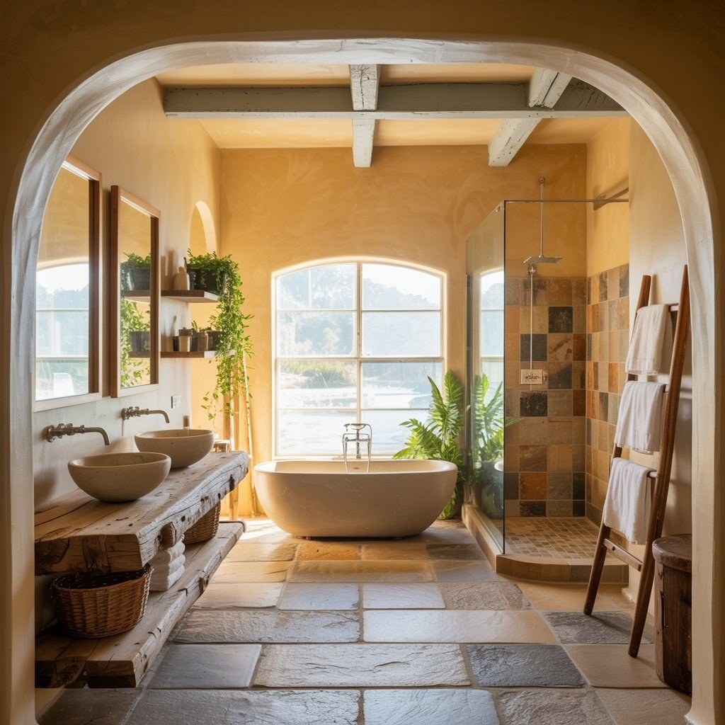 #3 Coastal Rustic Bathroom: Beach House Design & Natural Tiles
