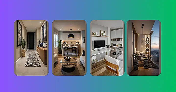 Ever feel like your room is the size of a postage stamp? Don’t stress! This picture shows how you can make even the smallest space feel super fancy. Check out how they used cool lights and wall decorations to make the room seem bigger and brighter. It’s like a magic trick for your apartment!