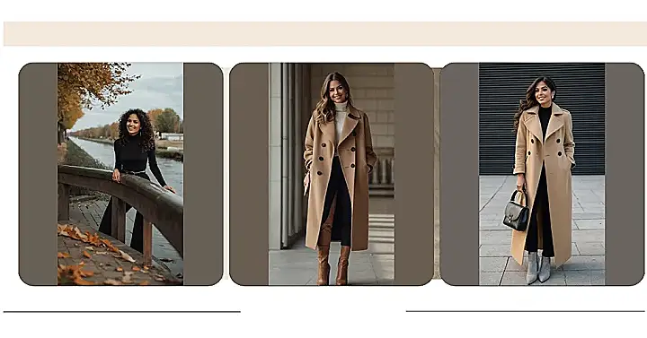 Hey there, fashion-forward ninth-graders! Check out this awesome outfit – perfect for those chilly November days. Imagine strolling through a park with all the leaves changing color, looking effortlessly stylish in a long camel coat. It’s like a hug that keeps you warm and fashionable all at once! That black turtleneck and those wide-leg trousers underneath? They’re the secret weapons for ultimate comfort and a chic, put-together look. No more struggling with what to wear; this combo is your November go-to!