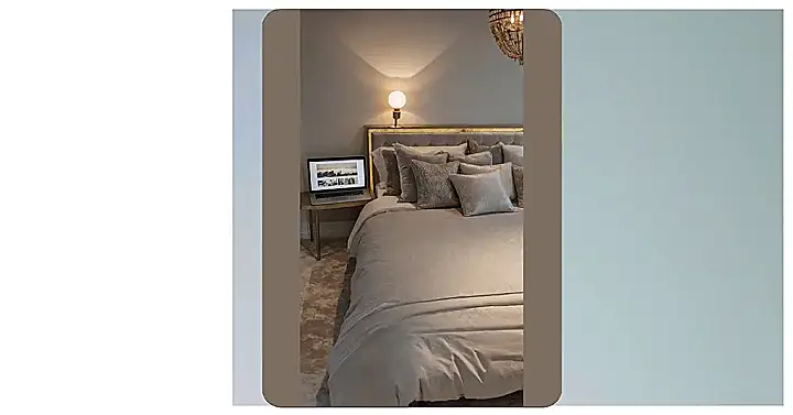 Peep that laptop on the side table – that’s prime real estate for scrolling through endless ‘room inspo’ pics, probably while snuggled under that ridiculously soft duvet. Who needs to leave this cozy bubble when you can literally plan your entire room’s glow-up from here? Finding the perfect vibe for your space is way more fun when you’re this comfortable, just try not to drool on the keyboard thinking about all the cool stuff you could add!