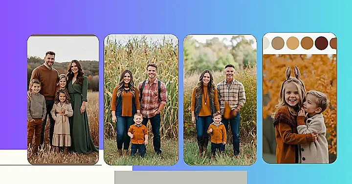 Imagine strolling through a field of golden leaves, wearing these cute outfits. Your family photo will be the envy of all your friends. From the casual dad vibes to the trendy mom look, this image gives you all the inspiration you need to create a picture-perfect fall photoshoot that you’ll cherish forever. So, gather your family, grab your cameras, and get ready for some fall-tastic fun! Don’t forget to choose your favorite colors from the color palette at the top – it’s like a cheat sheet for creating the perfect autumnal ensemble. Happy styling!
