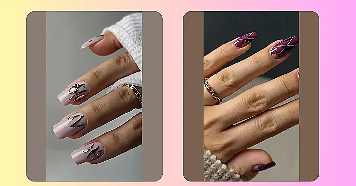 These nails are giving us major fall vibes! It’s like a warm, cozy sweater, but for your fingertips. The deep purple is perfect for those crisp autumn days, and the subtle gold lines are like a sprinkle of sunshine. You can totally rock these nails without looking like you’re trying too hard, which is the best part!