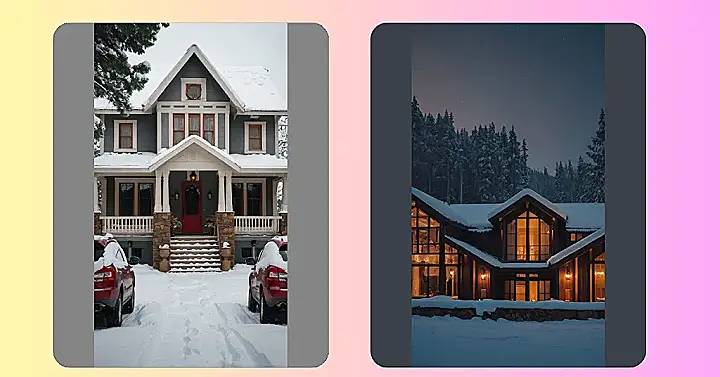 This charming house looks like it belongs in a holiday movie! All snuggled under a fluffy blanket of snow, it’s the perfect picture of a winter house exterior. Imagine sipping hot cocoa by the fire inside, while watching the snow fall softly outside—total cozy vibes! Those icicles hanging from the roof look like frosty, magical decorations, and the snow-covered bushes add a touch of whimsical charm. It’s so picturesque, it almost looks too good to be true!