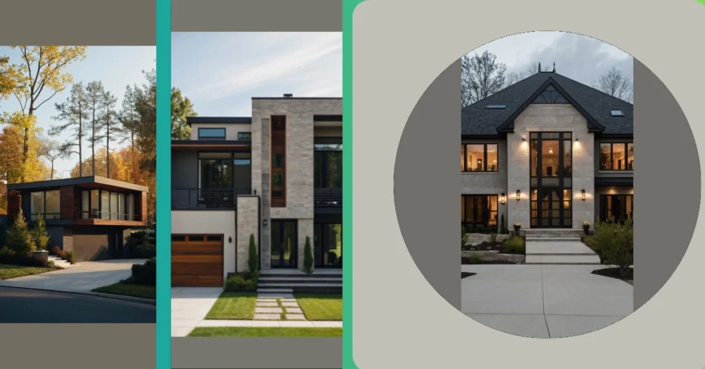 That house is seriously stylish! It’s like a modern suburban house stepped straight out of a magazine. Look at those clean lines, the dark windows glowing warmly against the light-grey siding—it’s totally Instagrammable! Imagine having movie nights in a house this cool, with the warm light spilling out onto the walkway, ready to welcome you home after a long day. You’d probably even feel a little bit fancy walking up that sleek concrete and stone path!