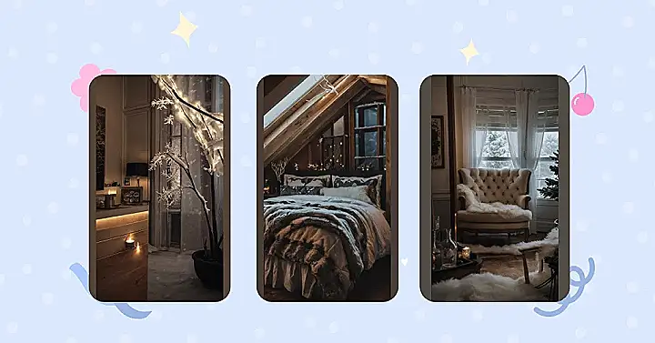 With its cozy bed, comfy pillows, and warm glow, this room is just begging for you to snuggle in and relax. And those little snowflake decorations are like a reminder that even though it’s cold outside, there’s still magic in the air!