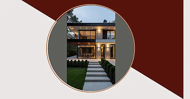 So, imagine this house plopped down in the French countryside! It looks super modern and fancy, like something you’d see in a movie where the characters are all rich and sip champagne. But there’s a cool contrast; it’s got a little bit of a rustic vibe with all that stone, making it feel like a comfy, expensive, countryside chateau.