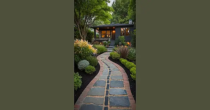 This picture shows a super cool home garden, perfect for a Canadian dream! Imagine strolling along that winding stone pathway, maybe even while sipping some hot chocolate on a crisp autumn evening. The mix of colours and plants creates a cozy vibe, and that house? It’s giving major ‘cabin in the woods’ but with all the modern comforts. It just screams relaxing after a long day of hockey practice or studying for that big math test.