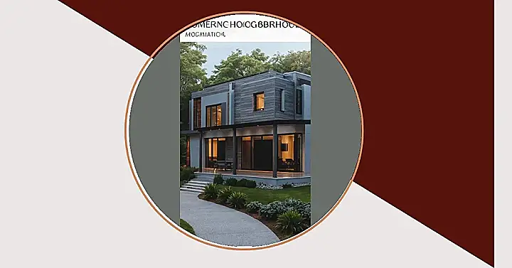 This house isn’t your grandma’s suburban home! It’s got that sleek, modern look with sharp lines and dark windows – imagine a super cool spaceship landed in the ‘burbs. But it’s also super cozy, with that warm wood accent adding a friendly vibe. It’s like the architect said, “Let’s make a house that’s both stylish and somewhere you’d actually want to hang out with your friends, eating pizza and watching movies.”
