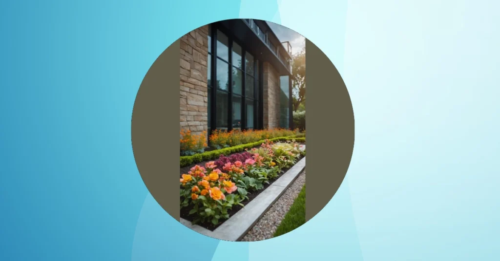 This image looks like it’s straight out of a fairytale! It’s like something a princess would wander through with her friends. There’s a super fancy modern house in the background, but the real stars of the show are the flowers! They’re all different colors and sizes, and they look like they’re growing right out of a dream.