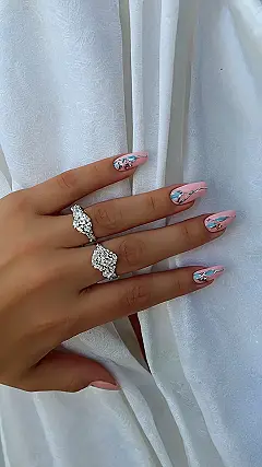 These nails are so pretty, they’re almost good enough to eat! Imagine showing up to your December holiday party with these beauties. The soft pink is perfect for the festive season, not too loud but totally glam. And those little bits of sparkly art? They’re like tiny, adorable holiday ornaments on your fingertips! You’ll be the envy of everyone at the family gathering. They’re festive enough for the holidays but chic enough to rock all winter long.