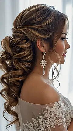 So, your bestie is getting hitched in July and you’re brainstorming hairstyles that scream “summer wedding” without screaming “I’m trying too hard!” This hairstyle is perfect, because it says “I’m effortlessly gorgeous” even though it probably took a village of bobby pins and a can of hairspray to create. Plus, that sparkly hair clip? It’s like a tiny disco ball for your hair, ready to reflect all the good vibes on the dance floor.