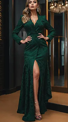 Forget the boring jeans and t-shirt, this dress is all about embracing the fall vibes in a way that’s both comfy and glamorous. And let’s be real, with that sexy high slit, you’ll be turning heads wherever you go – even if you’re just grabbing a pumpkin spice latte. This dress is the perfect blend of cozy and chic, and you’ll feel like a total princess in it – even if you’re just trying to avoid stepping on a pile of leaves.
