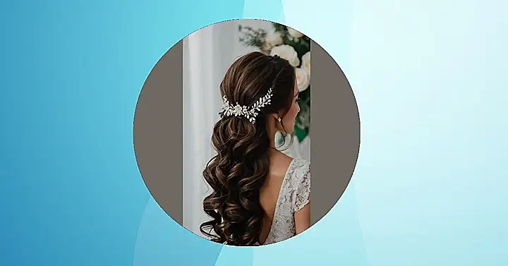 This hairstyle is seriously stunning! Imagine having those gorgeous, bouncy curls all styled up into a fancy bun, like a majestic crown on your head. Then, BAM! You add that sparkly, delicate hairpiece—it’s like adding the perfect cherry on top of an already amazing sundae. It’s the kind of look that would make even the grumpiest wedding guest crack a smile. This is definitely a hairstyle that says, “I’m getting married, and I’m going to look absolutely amazing while doing it!”