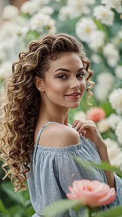 Plus, isn’t it cool how curly hair can change your whole vibe? One day you can have wild, free-flowing waves, and the next you can totally rock a more defined curl pattern, just like the picture shows off. It’s like your hair has moods, just like you! Seeing those perfect ringlets here makes you want to grab your curling iron or just embrace your natural texture, because this kind of cute, especially with a background full of pretty blooms, is hard to beat and totally worth showing off.