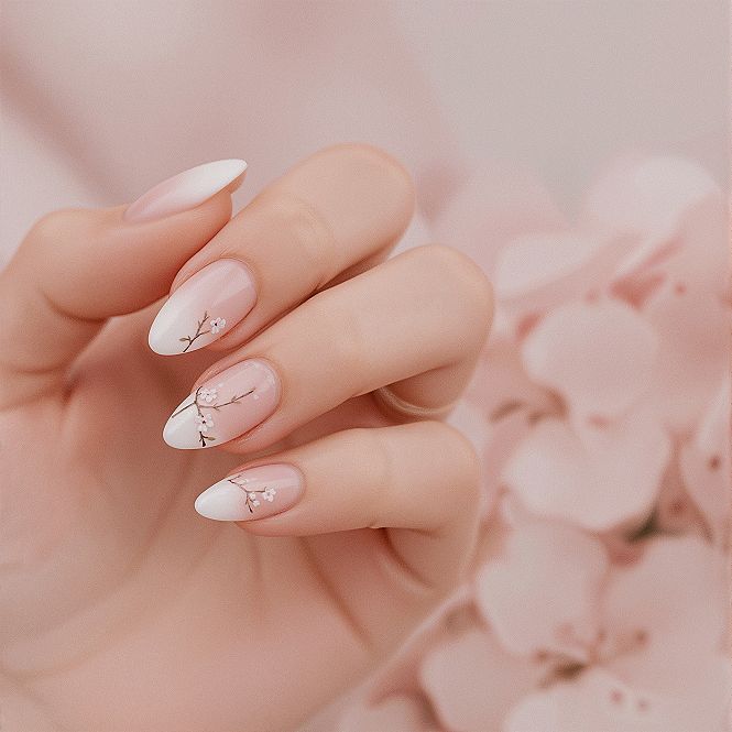 #1 Elegant Ombre Almond Nails: March Spring Floral Designs