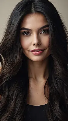 This girl’s hair is darker than a midnight snack! It’s so glossy and swishy, it practically screams, “Look at me, I’m fabulous and my hair is the star of the show!” Seriously, it’s like she’s a Disney princess who traded in her blonde locks for something way more dramatic and mysteriously cool. And that burgundy shirt? It’s the perfect complement to her stunning dark winter hair color—it’s like they were made for each other.