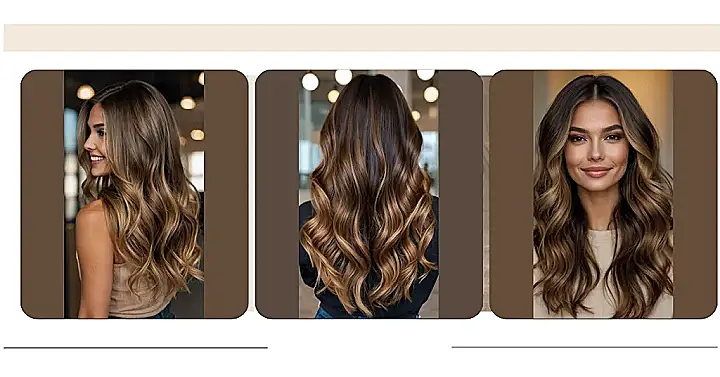 This hairstyle is like a sunset, but for your hair! Imagine those gorgeous, sun-kissed strands, all wavy and lovely. It’s a dark brown base with lighter brown and blonde highlights – a total balayage dream. It’s the perfect way to add some dimension and shine to your hair without going full-on blonde, and who doesn’t love a little extra bounce in their locks? It’s like your hair went on a mini vacation and came back looking fabulous.