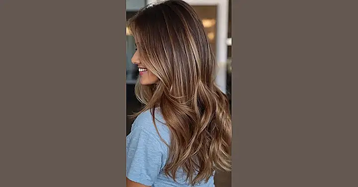This picture is like looking into a magazine! The girl in the photo has those super-long, gorgeous waves. Her hair is a perfect blend of brown and blonde, kind of like a chocolate chip cookie with some sprinkles. It’s the kind of hair that makes you wish you could just run your fingers through it.