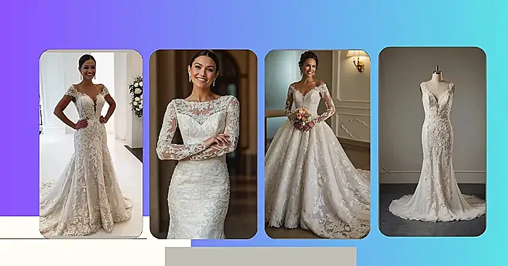Imagine walking down the aisle in this sparkly number! It’s got that super elegant vibe with all the lace, but get this – those little beads? Total game-changer! It is not only super pretty but also adds the perfect amount of bling to make you feel like the absolute queen of your own wedding. You will be shining brighter than the disco ball at the after-party!