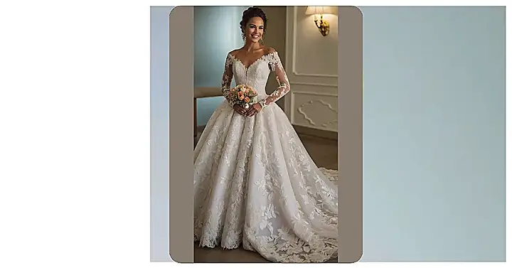 This dress is like if someone spilled a whole box of sparkly beads and gorgeous lace onto a cloud. The intricate details are seriously stunning, and you’ll definitely catch everyone’s eye as you walk down the aisle. Prepare for all the compliments, because this gown screams “fairytale ending!”