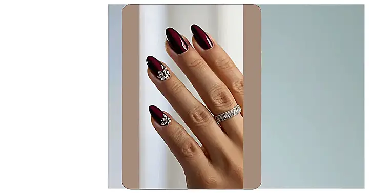 Getting ready for prom is basically like training for the Olympics, but for looking awesome. You pick the dress, the shoes, maybe even learn how to do a fancy updo without accidentally gluing your hair to your head. But let’s be real, the nails? That’s where the magic really happens. Check out these dark red stunners! They’re so sleek and shiny, they look like tiny candy apples, almost good enough to eat (but seriously, don’t). And that little sparkly flower? It’s not just decoration; it’s basically a tiny disco ball on your finger, ready to catch the light and make your hand look like it just won the lottery.