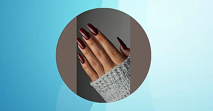 The picture shows some seriously stylish nails. They’re long, they’re pointy, and they’re a gorgeous shade of burgundy. Honestly, they look like they belong on a queen! The nails are so shiny and smooth, they almost look like candy. This person definitely knows how to rock a bold color, and I’m pretty jealous of their amazing manicure.