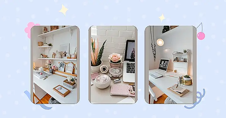 Imagine spending your afternoons in this gorgeous space, surrounded by pretty things and feeling totally stress-free. It’s the perfect spot for crafting, studying, or just relaxing. The soft lighting and pastel colours create a zen-like vibe, so you’ll actually *want* to spend time tidying up your desk. Who knew organization could be so stylish? And hey, if all else fails, you can just pretend you live here—at least until you’ve cleaned your own room!