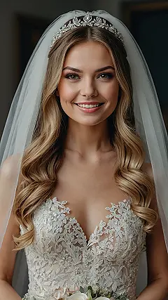 Rocking a hairstyle with a crown and veil isn’t just about looking pretty; it’s about feeling like you can totally conquer the world, or at least totally slay the dance floor. The crown adds the sparkle, the hairstyle brings the drama with all those waves, and the veil adds that classic, slightly mysterious touch. It’s the ultimate power trio for your head! Bet you could store snacks in those curls, too – multitasking at its finest for a busy bride.