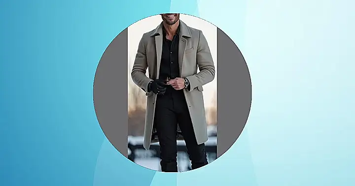 Hey grade 9’s! So, winter’s here, and that means it’s time to ditch the flip-flops and embrace the awesome power of men’s winter fashion. Check out this guy – he’s rocking a super stylish, sand-colored coat that’s like a warm hug for your body. It’s totally sophisticated but not stuffy, you know? Plus, the black shirt and pants underneath are a classic combo that will never go out of style. It’s like a secret superhero outfit—stylish and warm, ready to face the coldest blizzard! Think James Bond meets comfy couch.