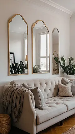 This room is seriously screaming “chill vibes only!” Imagine sinking into that comfy-looking couch with a good book and maybe a snack (or three). The plants are practically begging to be Instagrammed, and those mirrors? Forget just checking your outfit, you could practice your TikTok dances and make sure every angle is perfection!