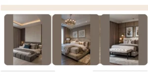 That ceiling light looks like it’s trying to escape the room – maybe it’s tired of watching you sleep! Jokes aside, this bedroom interior design is pretty sweet. The colors are calm, the bed looks super comfy, and those round mirrors hanging on the wall look like a fun detail. It’s the kind of place where you could actually chill instead of just tossing your clothes on the floor…though no promises!