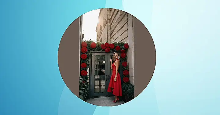 Those giant red flowers behind her are giving her some extra flair. It’s like she’s a princess, and the flowers are her loyal subjects, cheering her on. She’s got a sparkle in her eye, and her outfit is screaming “charming,” so maybe she’s about to meet a prince charming himself! Or maybe she’s just about to win a million bucks on a game show – either way, this lady knows how to rock a red dress, and that’s all that matters!