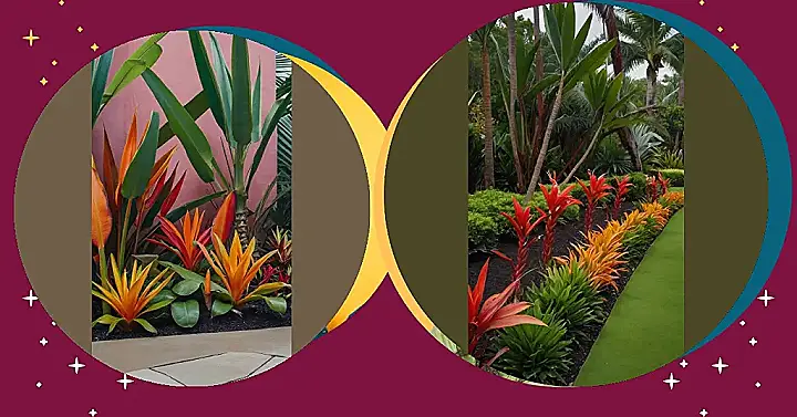 Imagine this: You’re strolling through a garden that’s practically screaming “Aloha!” It’s got all the right moves – tall, skinny palm trees reaching for the sky like they’re trying to touch the clouds, big, leafy plants that look like they’re wearing giant green wigs, and flowers that pop with bright colors, like someone just threw a confetti party. This isn’t your grandma’s garden – it’s a tropical paradise that’s ready to throw a luau!