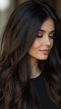 Imagine walking into school with hair this amazing! You’d be the envy of every classmate. This dark winter hair color is so chic and sophisticated, it’s basically the hair equivalent of a perfectly tailored black leather jacket – edgy yet elegant. Plus, the soft waves add a touch of effortless beauty, proving that you can be effortlessly cool *and* rock a killer hairdo. It’s the kind of hair that screams “I woke up like this” – even if it took a little extra effort (we all have secrets!).