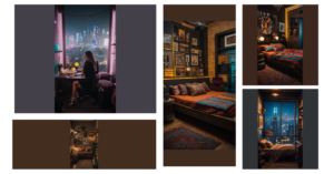 This isn’t your average room; it’s got personality popping out everywhere! You’ve got plants looking like they’re trying to take over (in a good way!), funky art that makes you think ‘hmm, cool!’, and textures everywhere you look. It’s the kind of spot where you can truly be yourself, whether you’re having deep conversations with friends or just scrolling through TikTok in ultimate comfort. Itโs got that laid-back, โdonโt care if you spill popcornโ kind of feel, but also looks totally awesome while doing it.