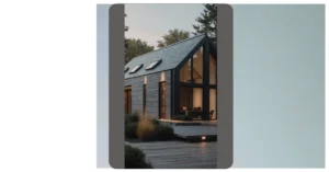 This house is so strange, it looks like it’s about to fall over! It’s got these weird angles and jutting-out parts, like a giant puzzle that someone forgot to put together properly. But even though it looks like it’s about to tip over, it’s actually super fancy, with a big pool that looks like it’s reflecting the house’s crazy design. It’s like the house is trying to escape its own shadow!
