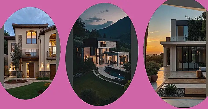 This house is like something straight out of a magazine! It’s got everything you could ever want in a home: a big, beautiful front yard with mountains in the background, massive windows that let in tons of light, and a fancy front door that just screams, “Welcome to luxury!” Even the driveway is paved with stylish concrete and has some sweet landscaping. You’d be hard-pressed to find a cooler place to chill with your friends.