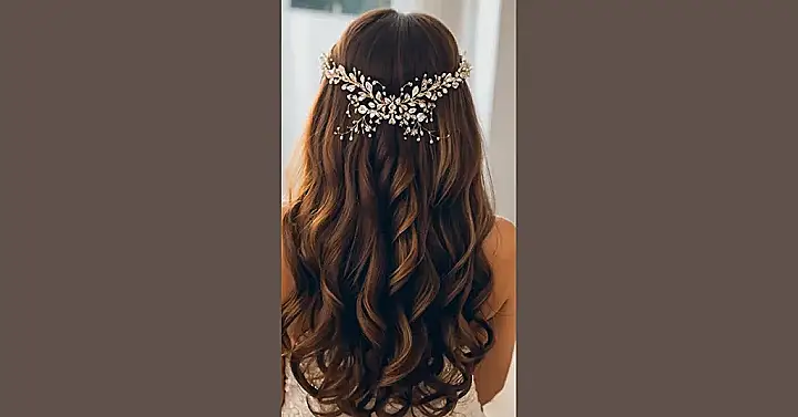 This hairstyle is like if a Disney princess met a surfer girl and they decided to get married. The wavy hair has this perfect “I just came from the beach” vibe, but the sparkly headband makes it totally princess-worthy. It’s basically the ultimate blend of relaxed and regal.