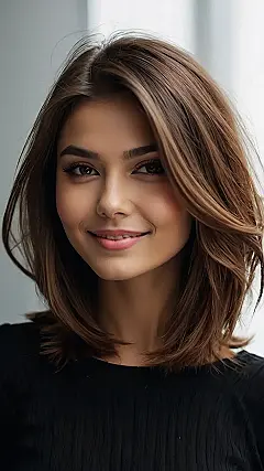 Thinking about leveling up your look without going super short or waiting for Rapunzel-length locks? This hairstyle is giving major ‘effortless chic’ vibes! With layers that frame the face and a length that’s totally manageable, it’s like the perfect in-between. Imagine rocking this look at school, at a party, or even just chilling at home watching Netflix – it’s the kind of style that works for basically anything!