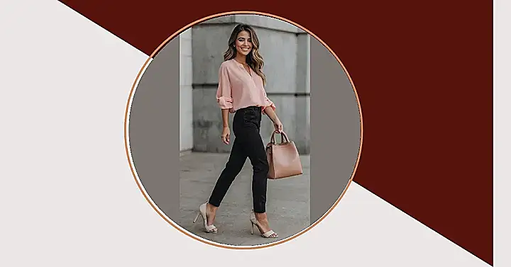 Okay, imagine you’re walking down the hallway at school and everyone’s staring. Not because you spilled lunch all over yourself (ew!), but because you’re looking totally awesome in a classy outfit. This girl is rocking a light pink blouse and dark jeans, and let’s be honest, she’s totally owning it. She looks confident, comfortable, and ready to take on the world. Who wouldn’t want to look that cool?