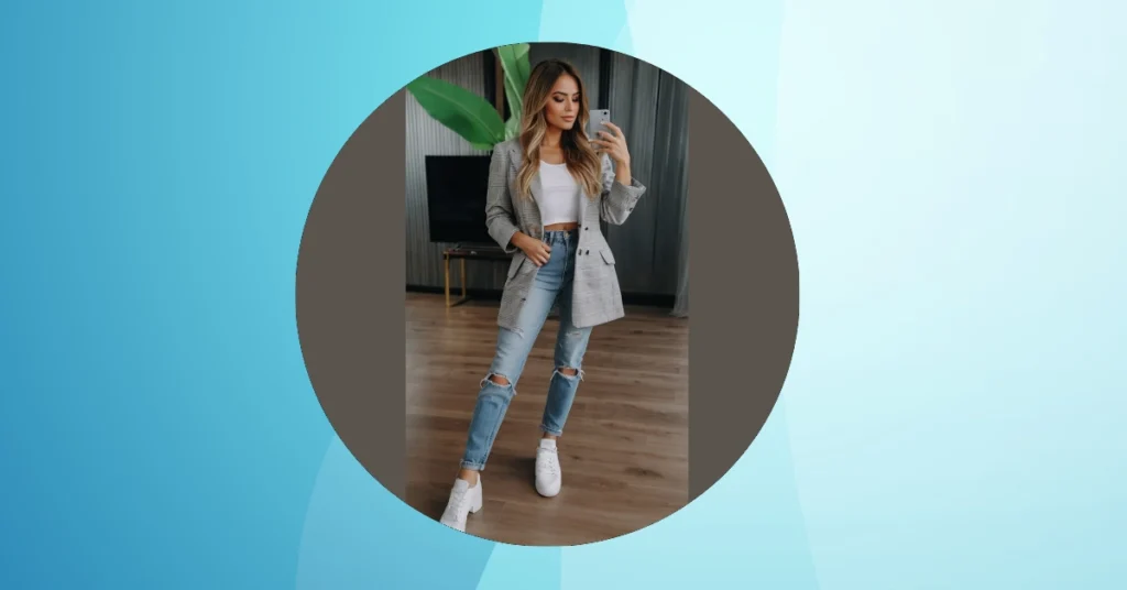 You might be thinking, “Blazer with ripped jeans? That’s crazy!” But think about it – it’s a classic look with a modern twist. It’s like saying, “I can dress up, but I’m not afraid to be myself.” This outfit is proof that you can be stylish without sacrificing comfort. So go ahead, rock the blazer and ripped jeans, and show the world you’re a fashion icon in the making!