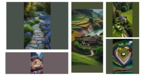 This garden is like a fancy party for your eyes! It’s all about the little details: perfectly shaped bushes that look like they’re wearing tiny hats, fancy lamps that glow softly, and a pathway that whispers “come on in, let’s have a good time.” It’s the kind of place where you can sip lemonade in a fancy dress, even if it’s just a pretend one in your imagination.