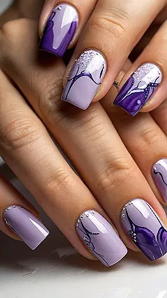 Honestly, rocking these nails is like carrying a tiny, elegant art gallery on your fingertips. Imagine the conversations you could start! People will be so busy admiring your nail art, they won’t even notice if you spill your grape soda. Plus, purple just screams confidence. You’ll be ready to conquer the world, or at least ace that history test.