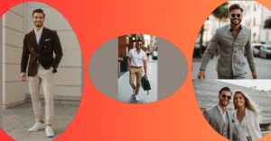 This outfit is a total game-changer! You know those days when you want to feel put-together and stylish, but you don’t want to be stuck in jeans and a t-shirt? This outfit is perfect for that! A white suit instantly elevates your look, giving you that sophisticated vibe. But the key to making it casual is all in the details. Notice how the woman is wearing a simple white top, and a belt that adds a touch of personality. This outfit is seriously chic, and you’d be surprised how easy it is to copy!